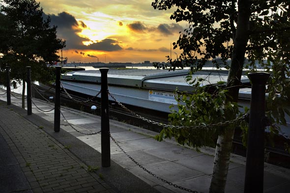 Het IJ bij het KNSM-eiland, tegen zonsondergang